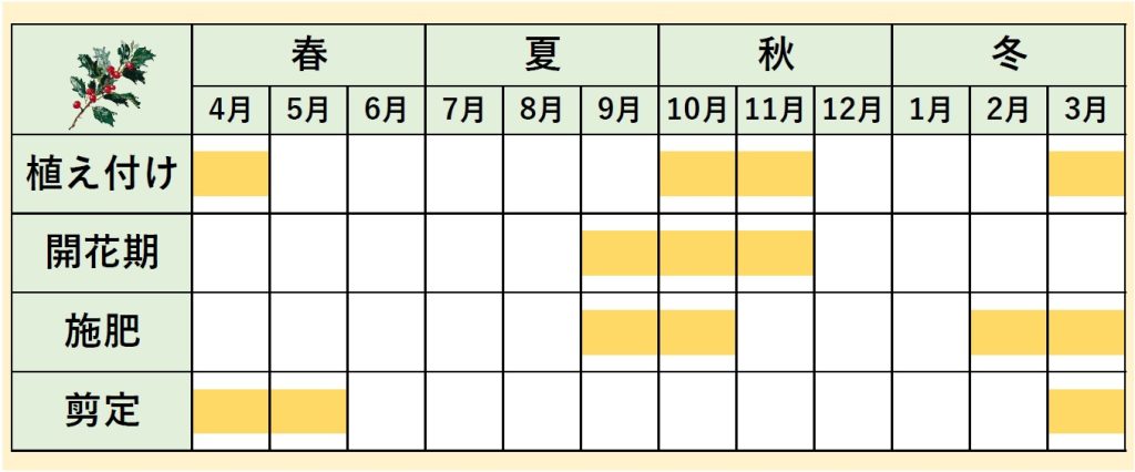 ヒイラギの剪定に適した時期は、3月〜5月頃です。