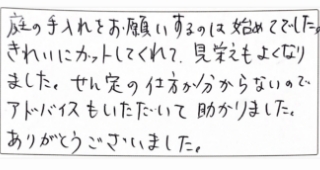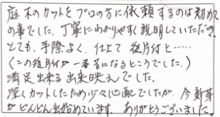 保証条件に従い、ご納得いただけるまで何度でも切り直しいたします。お客様窓口のコールセンター「グリーンコール」にて承りますので、担当の植木カットデザイナーには直接伝えづらいことも、お気軽にご相談ください。 -