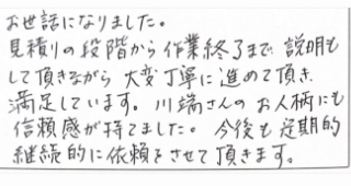 まずは無料で正確なお見積りをお出しし、内容にご納得いただいてから作業に入りますので、安心してお任せください。