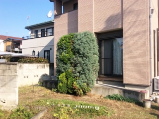 コニファーは全体のバランスを考えながら、もっさりとした樹形を剪定してすっきりとした印象になりました。
