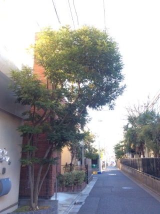 作業時期:12月 作業時間:1時間 建物前に植えられた木が生長し、もう少しで電線に届きそうになっていました。 また、高くなった木の上部が道路側に張り出していました。 電線に届かないよう高さを抑え、全体的にもしっかり目に剪定を致しました。 植木の背が高くなり重心が上の方にある状態になると、台風などの強風で木が倒れてしまう可能性も高くなります。 思わぬ事故を引き起こさないためにも定期的な植木のお手入れをおすすめします。