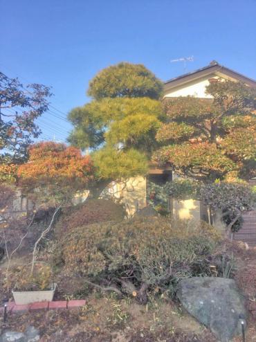 ホームセンターのカインズを通してご依頼をいただきました。 松2本の枝が伸びて、樹形が崩れていました。伸びた枝を全体のバランスを見ながら剪定し、込み合っている枝はつけ根から切り落としました。お手入れをしたことで、ふところの風通しや日当たりも良くなり、病害虫対策にもなりました。1本の樹木は伐採いたしました。