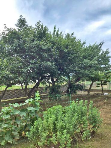 初めてご依頼をいただきました。 梅と柿の木が成長し、枝が伸びて葉が茂っていました。伸びた枝を剪定し、全体のバランスを見ながら樹形を整えました。